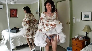 Sissy crossdresser Annette takes on 2 cocks 1of3