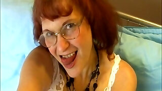 rothaarige ahegao teen bekommt einen schluck sperma, nachdem sie einen großen schwanz gewichst hat