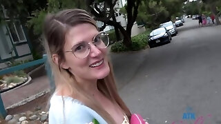 gelegenheitssex mit einem geekigen mädchen endet mit einer großen gesichtsbehandlung nach doggystyle-schärfe