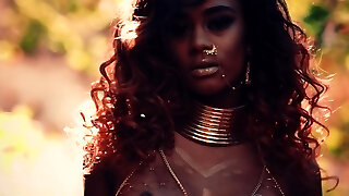 atemberaubendes dunkelhäutiges cowgirl mit gepiercter muschi, das einen würzigen interracial-fick im freien genießt
