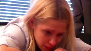 entzückende, blauäugige platinblonde schulmädchen gurgelt zart ihren paramour's lutscher, um ihn jism zu machen
