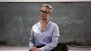 Blonde schoolteacher Jordan Maxx wants to help her college girl achieve success...and erections