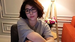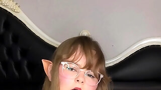 This frisky BBW coed with fat juggs loves to fap with her glasses on