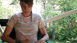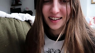 Sexy Legal Age Teenager Plays With Her Large Boobs And Shaved Love Tunnel On Her Sofa