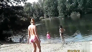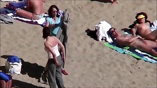 Exhibitionist Wife 472 Part 2 - Nude Beach Voyeur Strokes His Cock In Front Of My Wifey Helena Price While She Plays With Her Hairy Muff!!!