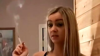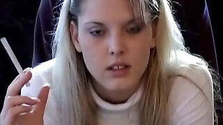 Perfect light-haired teen smoking on cam