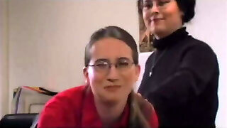 Brunette girl moans loudly while a acquaintance hits her with a stick