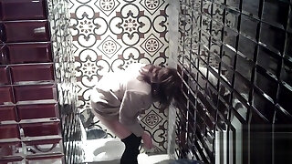 Lean and sexy milky stranger girl filmed from behind in the rest room