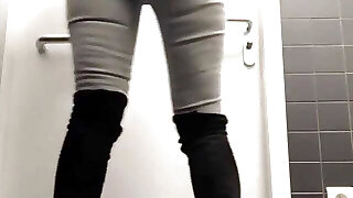 Filled With Hot Cum All Over Sexy Milfs Gorgeous Fat Ass In Public Toilet 5 Min
