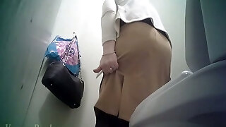 Chinese office milf lady pissing in the toilet