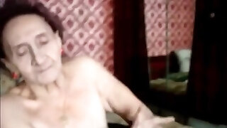 Dark haired wrinkled ugly mature housewife converses on webcam with my friend